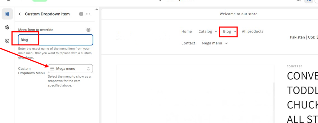 "info": "Enter the exact name of the menu item from your main menu that you want to replace with a custom dropdown."